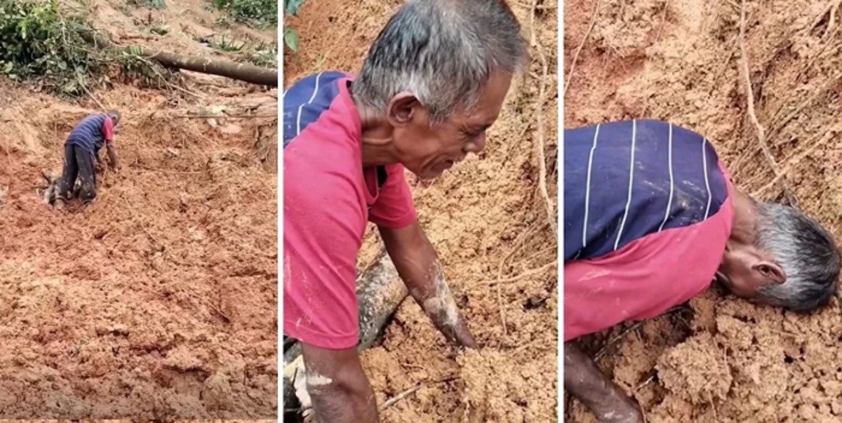 이 남성은 두 손으로 흙더미를 파헤치며 눈물을 흘리고 있었습니다.