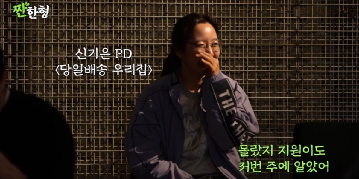 갑작스럽게 카메라에 잡힌 신기은 PD는 부끄러워하며 손으로 얼굴을 가리는 모습을 보였습니다.