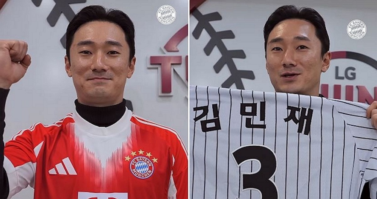 지난 15일 바이에른 뮌헨은 공식 SNS에 구단 직원이 LG 트윈스 사무실을 방문해 신민재에게 김민재 유니폼을 전달하는 영상을 공개했습니다.