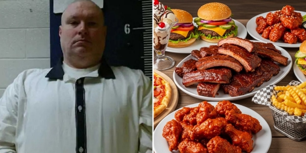 교도소 관계자들은 그가 이 모든 음식을 완식한 후 음료수 두 잔까지 추가로 마셨다고 전했습니다.