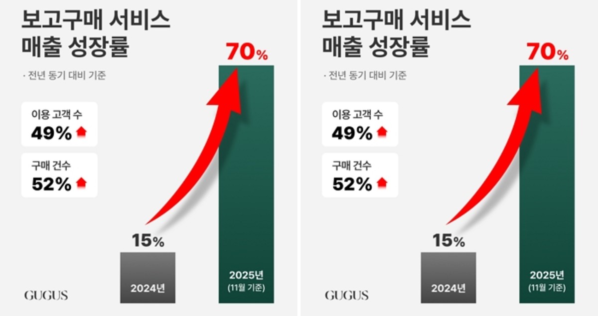 중고 명품 플랫폼 구구스는 18일, 자사가 운영 중인 '보고구매 서비스'의 올 1~11월 매출이 전년 동기 대비 70% 증가했다고 밝혔습니다. 이는 전체 온라인 매출의 48%에 달하는 수치입니다.