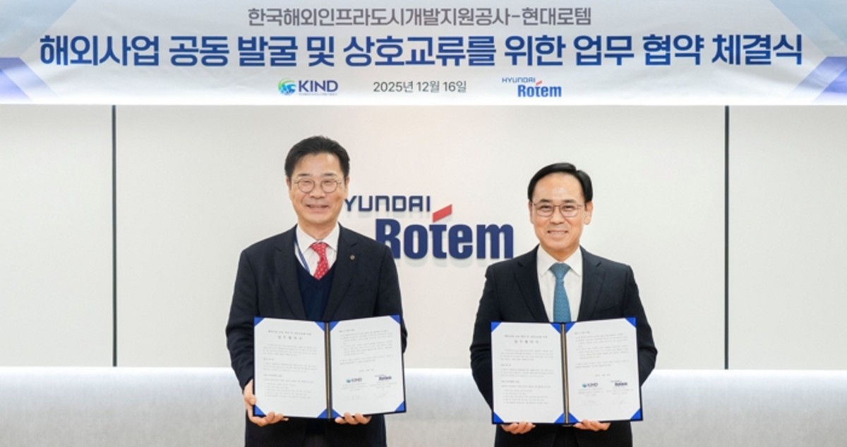 이용배 현대로템 사장과 김복환 KIND 사장을 비롯한 양사 관계자들이 참석한 협약식에서는 해외 철도사업 공동 발굴과 상호 협력체계 구축을 통한 신규 시장 진입 기회 모색을 목표로 협력 방안을 논의했습니다.