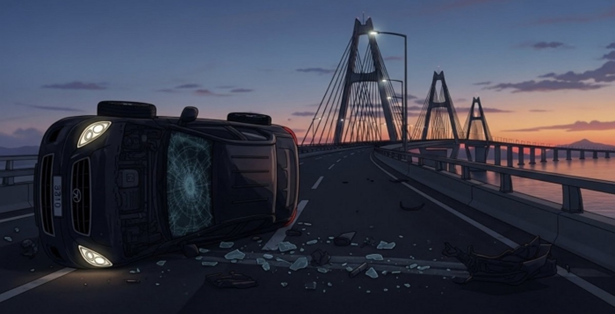 17일 새벽 인천대교에서 음주운전을 하던 30대 운전자가 요금소 시설물을 충돌한 후 차량이 전복되는 사고가 발생했습니다.