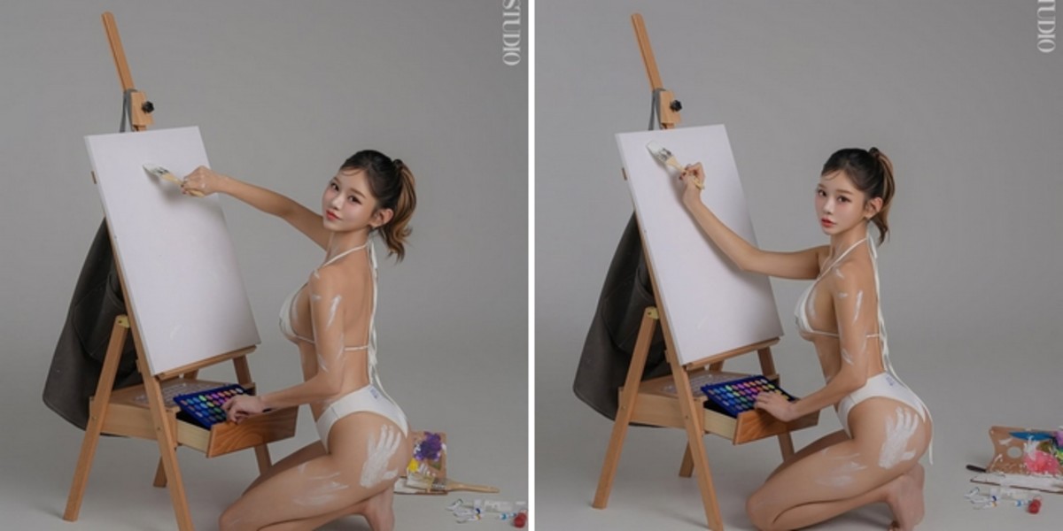 맹승지는 팔과 다리, 엉덩이 부위에 하얀 물감을 묻힌 채 카메라를 바라보는 연출로 도발적이면서도 예술적인 분위기를 완성했습니다. 특히 둔부에 선명하게 찍힌 하얀 손바닥 자국은 강렬한 인상을 남기며 보는 이들의 시선을 사로잡았습니다.