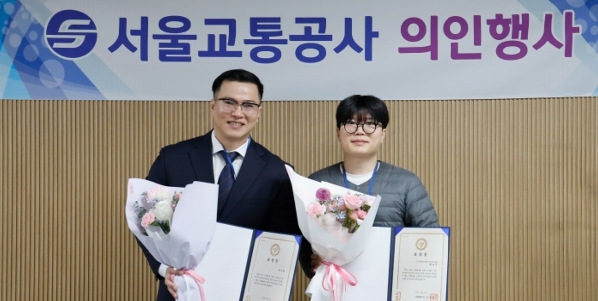 지하철 의인 포상행사에 참석한 박기한(좌), 황승연(우)씨. / 사진 제공 = 서울교통공사
