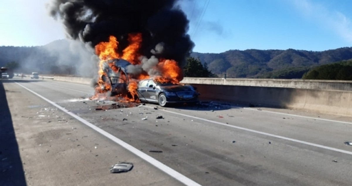 고속도로 사고로 차량 화재 / 사진=전남소방본부
