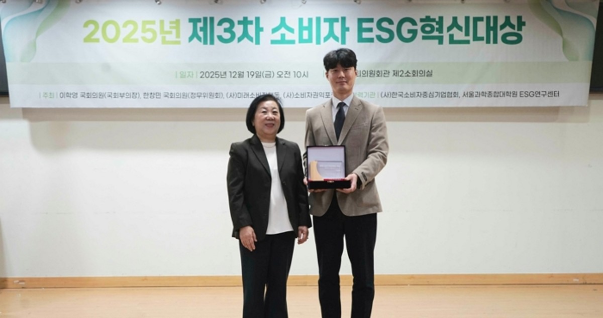 '소비자 ESG 혁신대상'은 미래소비자행동과 소비자권익포럼이 공동으로 주최하고 ESG소비자이니셔티브가 주관하는 시상식으로, ESG에 대한 소비자 인식 향상과 참여 확산을 목적으로 합니다.