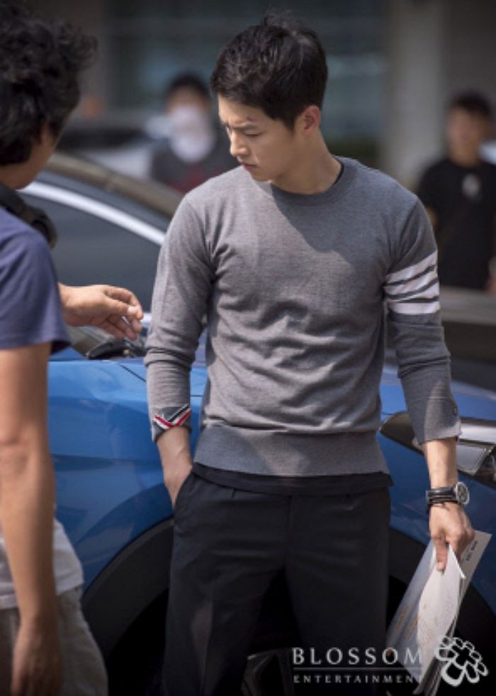 9일 소속사 블러썸 엔터테인먼트 측은 KBS '태양의 후예'에서 유시진 역으로 인기몰이 중인 송중기의 비하인드 컷을 올렸다.