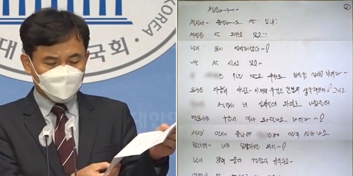 문제가 된 편지는 2021년 12월 21일 당시 국민의힘 김진태 이재명 비리 국민검증특별위원장이 공개한 것으로, 조직폭력배가 이재명 후보 측에 7차례에 걸쳐 약 10억 원의 뇌물을 건넸다는 내용이 담겨 있었습니다.