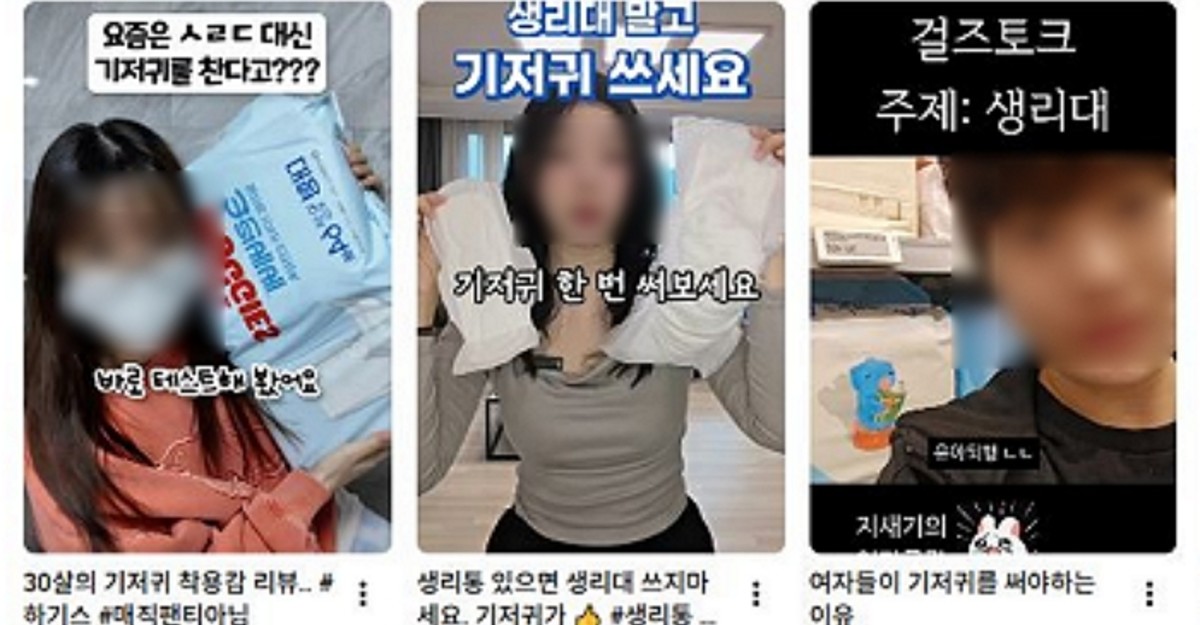 생리대 대신 기저귀 착용을 권하거나 실제 사용 후기를 공유하는 영상들 / 유튜브 캡쳐