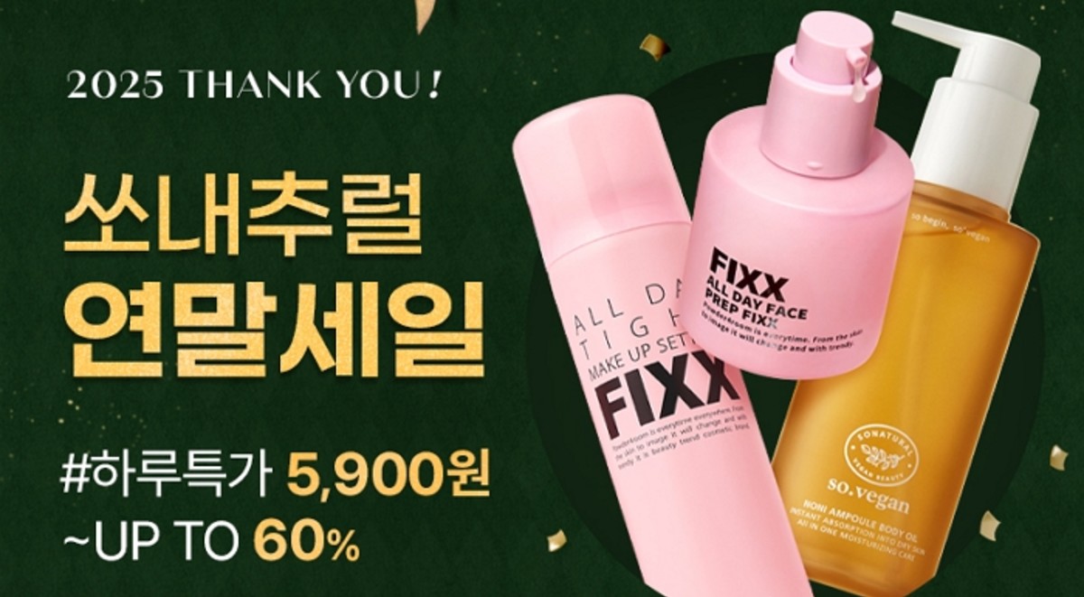 뷰티 브랜드 쏘내추럴(SO' NATURAL)이 2025년을 마무리하며 12월 22일 오전 11시부터 12월 31일 오전 11시까지 'GOOD BYE 2025 연말 전 제품 BIG 세일' 프로모션을 진행합니다.