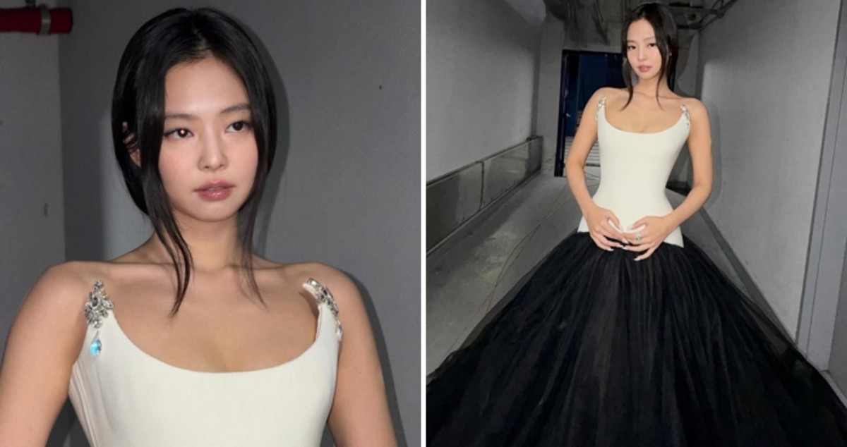 공개된 사진에서 제니는 블랙 앤 화이트 컬러의 우아한 드레스를 착용한 모습을 선보였습니다.