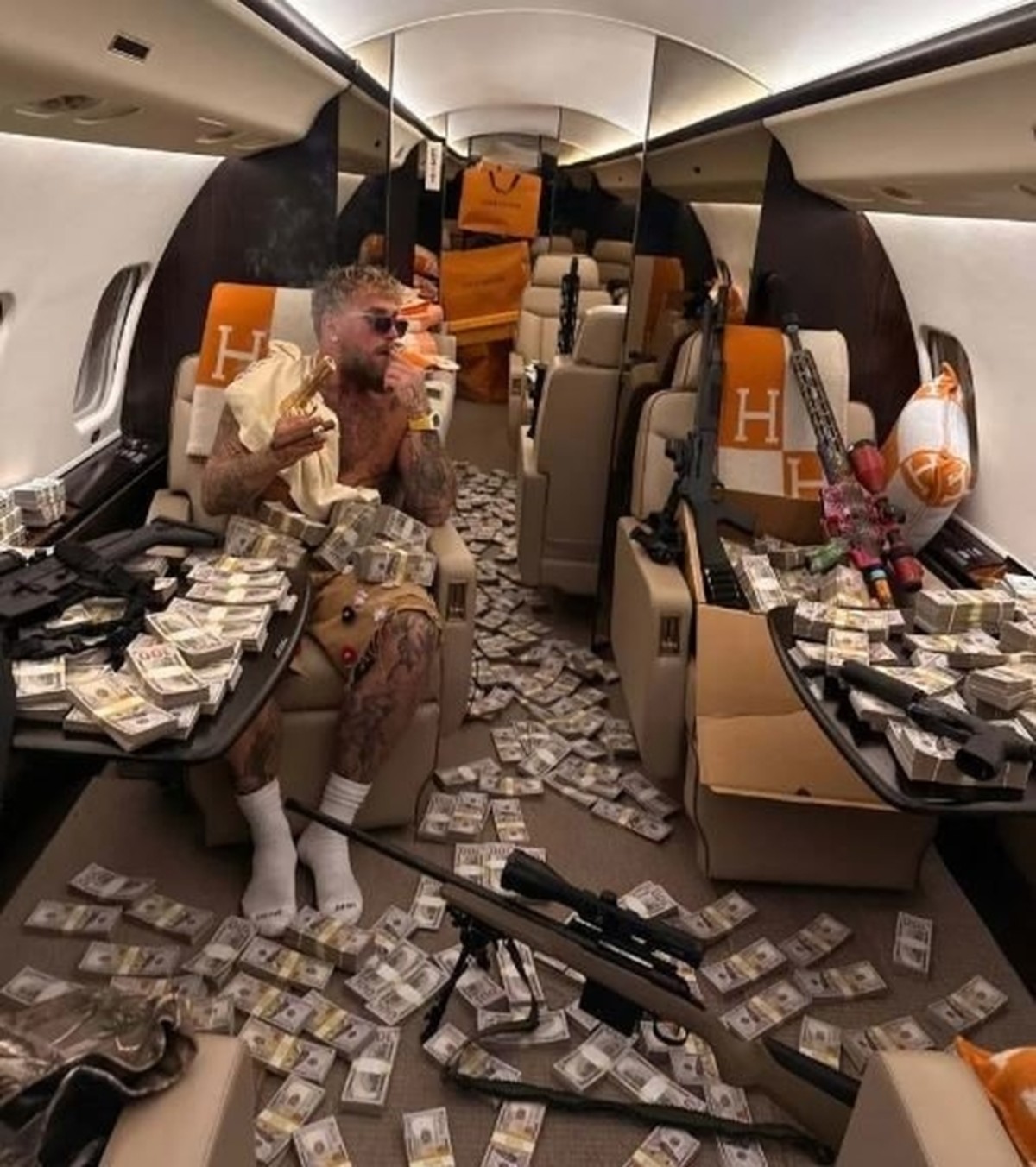 그는 경기 직후 전용기에서 현금과 총기를 과시하는 사진을 공개했습니다.