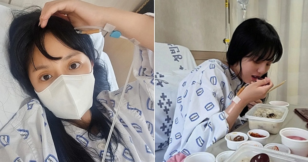 강은비가 공개한 사진에는 병실에서 마스크를 착용한 채 침대에 누워 있는 모습이 담겼습니다. 강은비의 수척해진 얼굴이 확인됩니다.