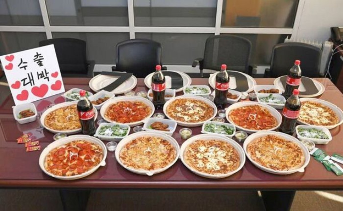대통령의 지시에 따라 청와대는 오후에 무역정책국과 투자정책국에 피자 약 20판을 전달했습니다.