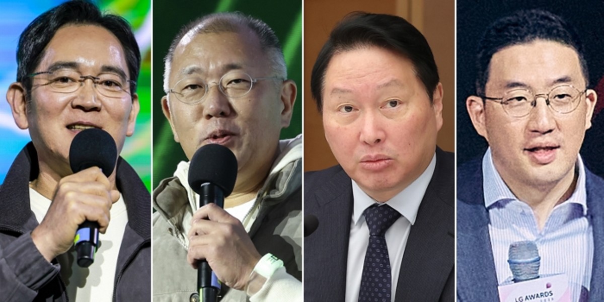 (왼쪽부터) 이재용 삼성전자 회장, 정의선 현대차그룹 회장, 최태원 SK그룹 회장, 구광모 LG그룹 회장 / 뉴스1