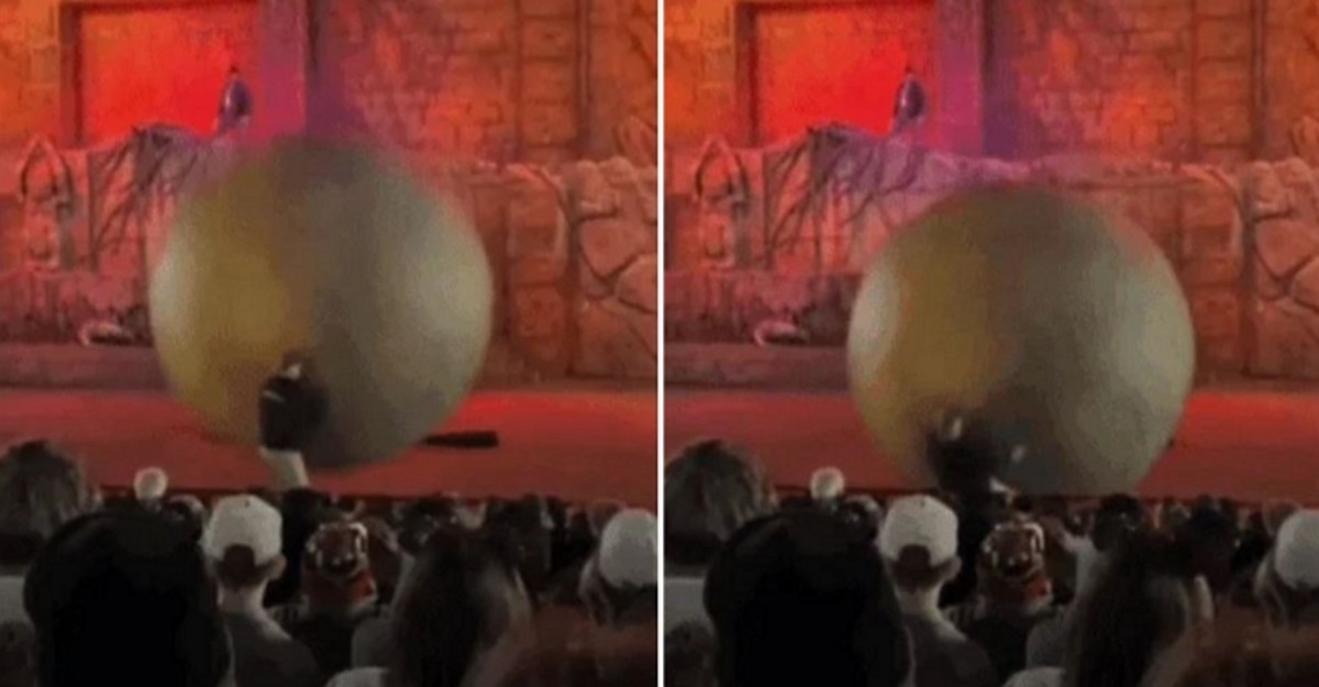 대형 고무공을 온몸으로 막는 디즈니 직원 / X 캡처