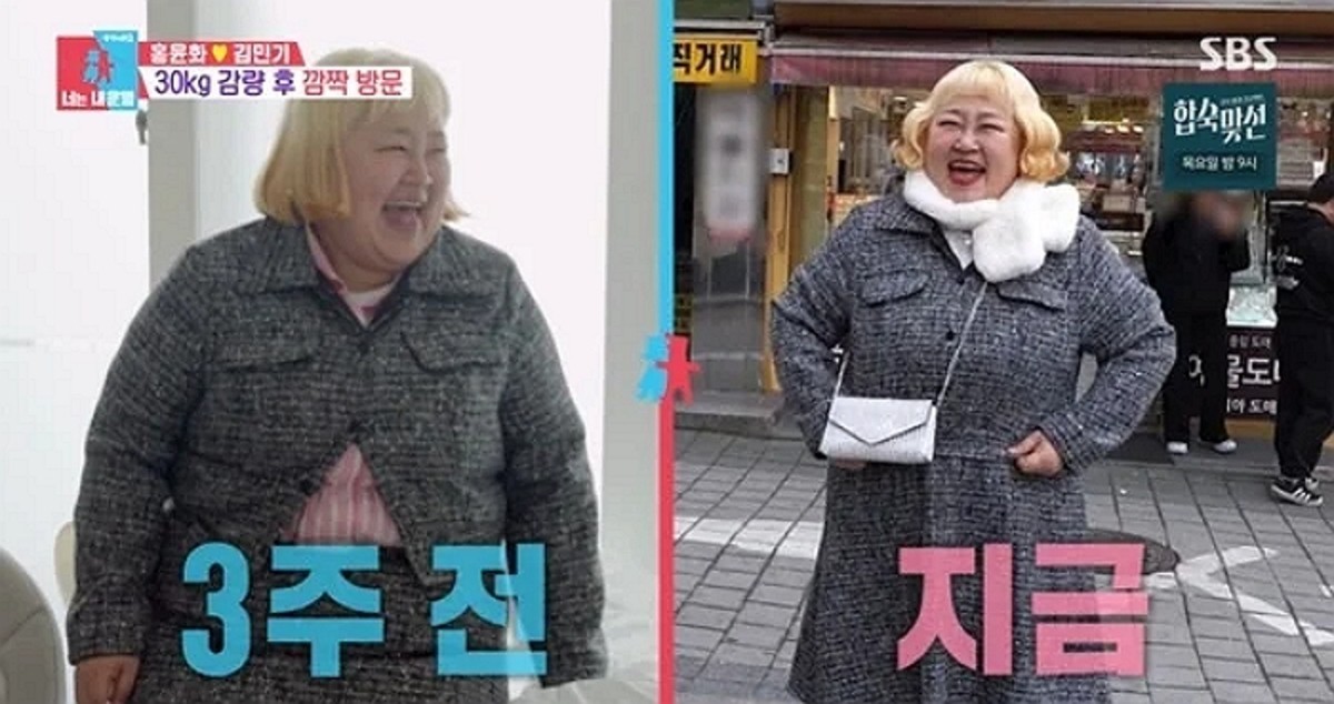 코미디언 홍윤화가 30kg 감량 성과를 몸소 증명하며 극적인 변화를 보여줬습니다.