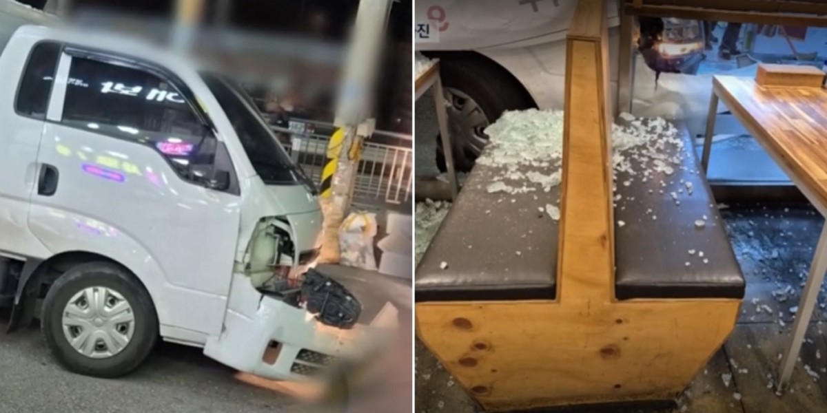 주방에서 작업 중이던 가게 주인은 큰 충돌음을 듣고 급히 나와 상황을 확인했습니다.