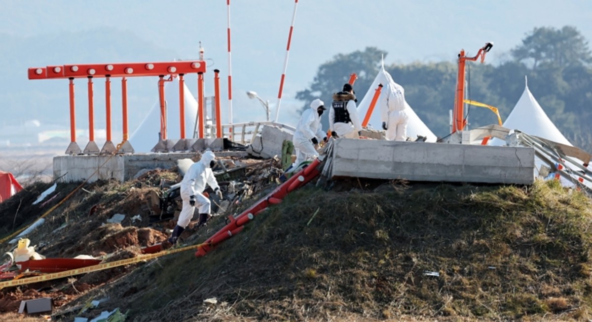 전남 무안국제공항 참사 현장에서 항공·철도사고 조사위원회(ARAIB) 관계자들이 로컬라이저(방위각시설) 둔덕을 조사하고 있다. 2025.1.3/뉴스1
