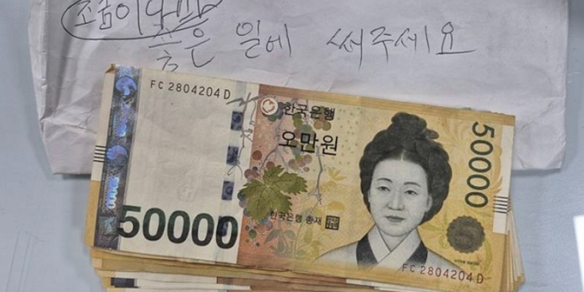 비닐봉지 안에는 5만원권 20장과 1만원권 1장이 들어있었으며, "조금이나마 좋은 일에 써달라"는 따뜻한 메시지가 적힌 봉투도 함께 있었습니다.