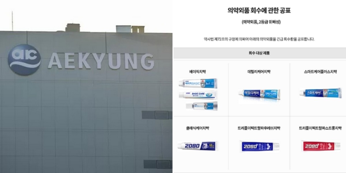 중국 위탁 생산 제품인 애경산업의 '2080 치약' 6종에서 금지 성분이 검출되었습니다. 이에 따라 업체 측은 자발적 회수를 시작했으나, 이미 2023년 4월부터 약 3년간 국내에 판매된 것으로 확인돼 소비자 주의가 요구됩니다.