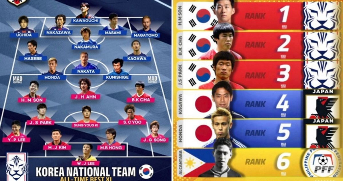 축구 콘텐츠 매체 매드풋볼이 지난 9일(한국시간) 한국과 일본의 역대 최고 선수들로 구성한 '한일전 올타임 베스트11'을 발표했습니다.