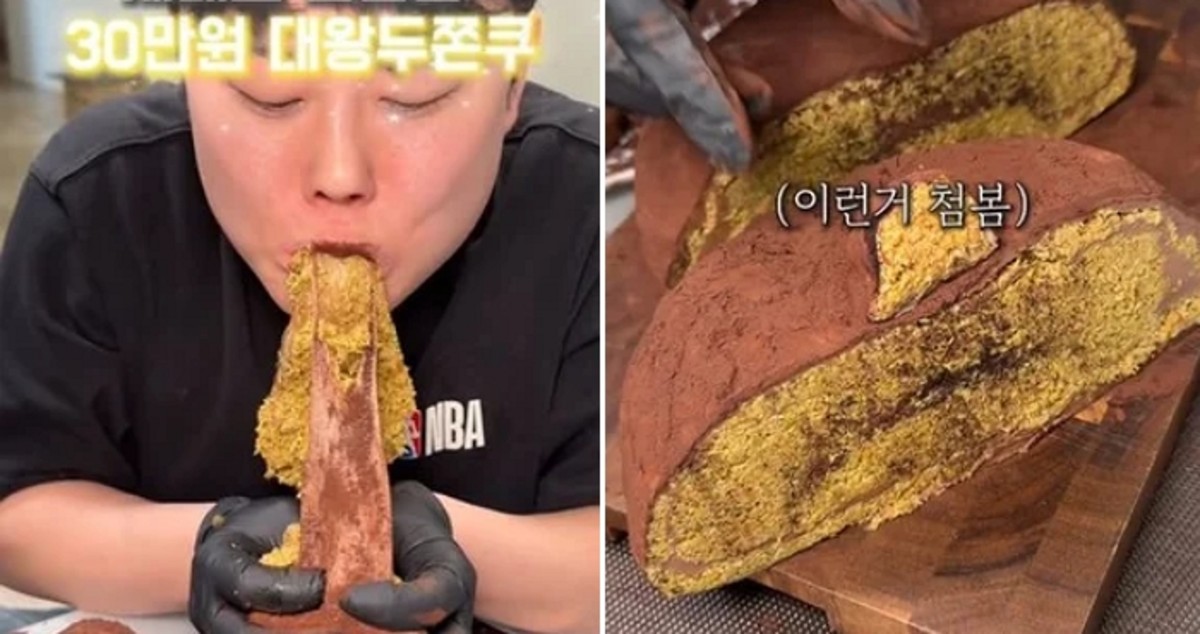 지난 8일 틱톡에는 "친구가 이상한 걸 가져왔다"는 제목으로 '대왕 두쫀쿠' 후기 영상이 게시됐습니다. 영상에 등장한 두쫀쿠는 두 손으로 잡고 뜯어먹어야 할 정도의 크기였습니다.