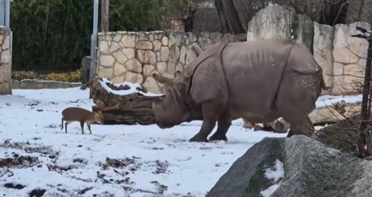 지난 9일 브로츠와프 동물원은 자신들의 페이스북 계정을 통해 13kg 사슴이 1.7톤 코뿔소를 상대로 한 놀라운 대결 영상을 공개했습니다.