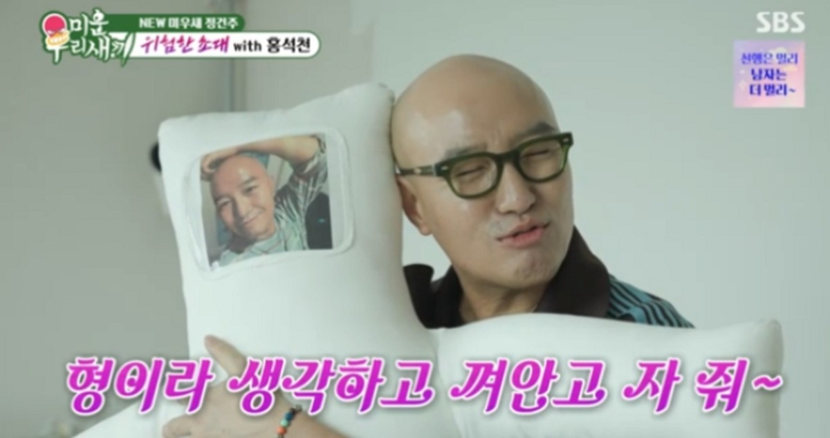 홍석천의 집들이는 침실에서 절정을 이뤘습니다. 장건주의 침대에 누운 홍석천은 갑자기 자신의 얼굴이 새겨진 대형 커스텀 인형을 꺼내 들었습니다.