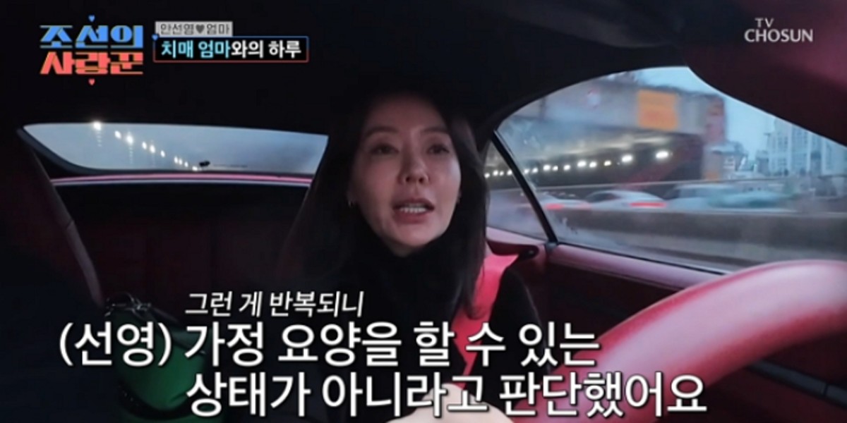 지난 12일 방송된 TV CHOSUN '조선의 사랑꾼'에서 안선영은 치매 투병 중인 어머니를 돌보며 겪은 힘든 경험담을 털어놓았습니다.