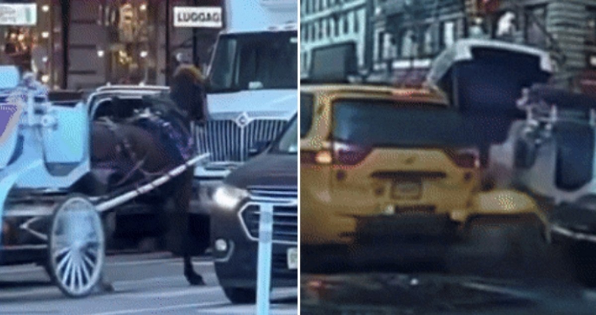 뉴욕 센트럴파크 인근에서 관광 마차를 끌던 말이 운전사 없이 혼잡한 도로를 질주하며 차량 5대와 연쇄 충돌하는 사고가 발생했습니다.
