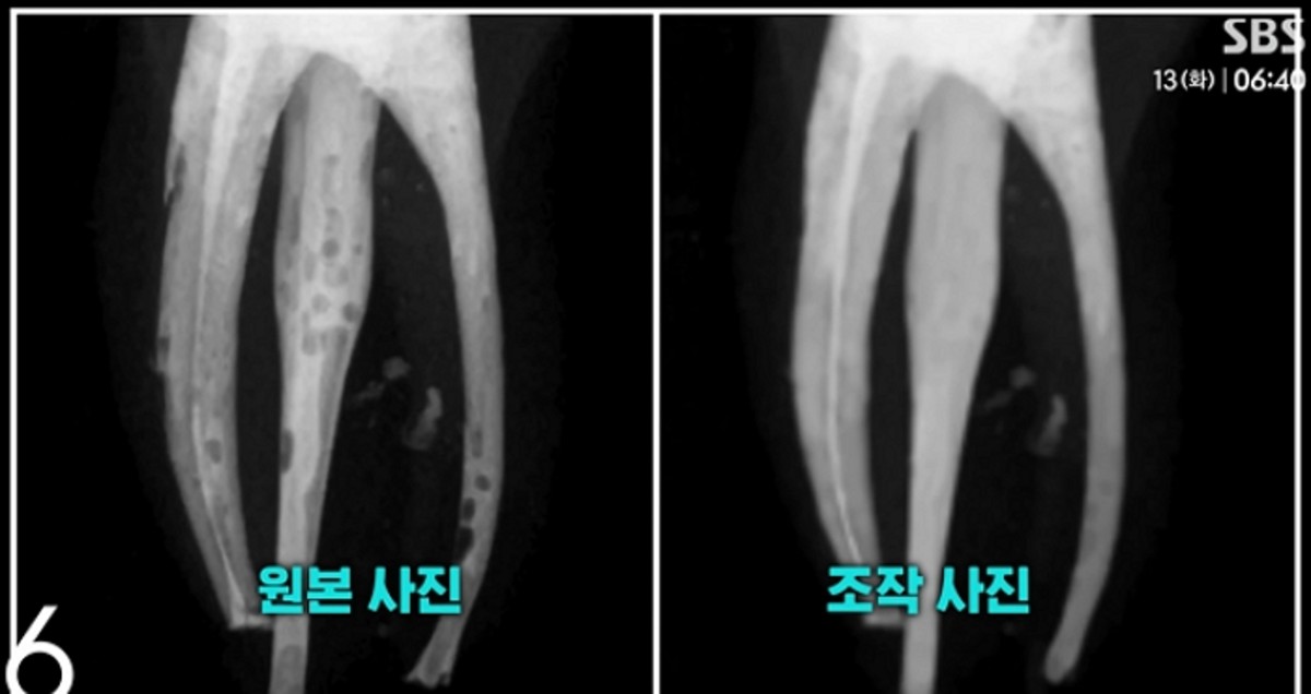 학생들은 신경 치료 과정에서 충전제 주입이 완전하지 않아 엑스레이 촬영 시 기포가 나타나자, 포토샵을 이용해 이를 제거하고 마치 완벽한 치료가 이뤄진 것처럼 결과물을 위조했습니다.