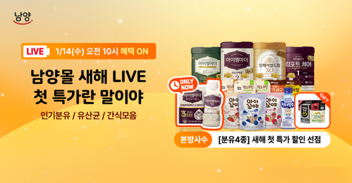 남양유업 관계자는 "새해를 시작하며 육아 가정의 경제적 부담을 덜어드리고자 분유부터 간식까지 다채로운 품목으로 구성했다"며 "올 한 해도 실시간 소통과 다양한 혜택이 결합된 라이브커머스를 통해 고객 성원에 보답할 것"이라고 밝혔습니다.