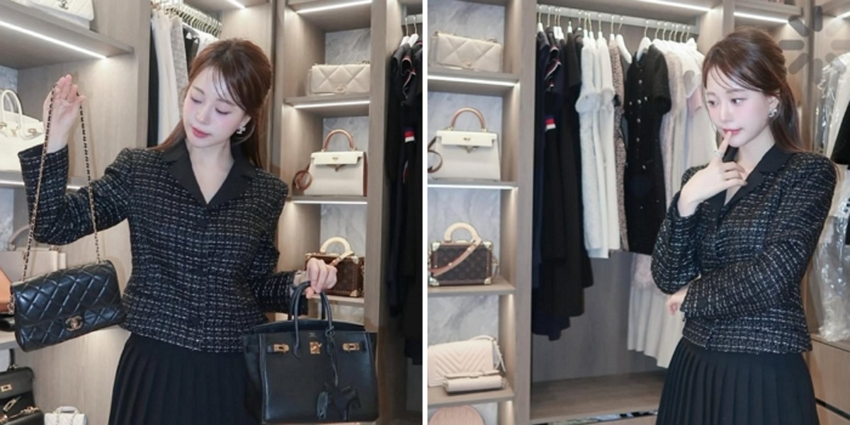 드레스룸 내부에는 샤넬과 에르메스를 비롯한 세계적인 명품 브랜드의 가방들이 가지런히 진열되어 있어 수천만 원 규모의 컬렉션임을 짐작케 했습니다.