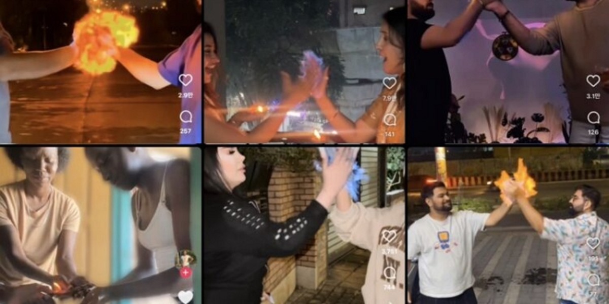 요즘 인스타그램과 틱톡 등 소셜미디어에서 화제가 되고 있는 '불 챌린지'는 맨손에 불을 붙이는 위험한 놀이입니다.