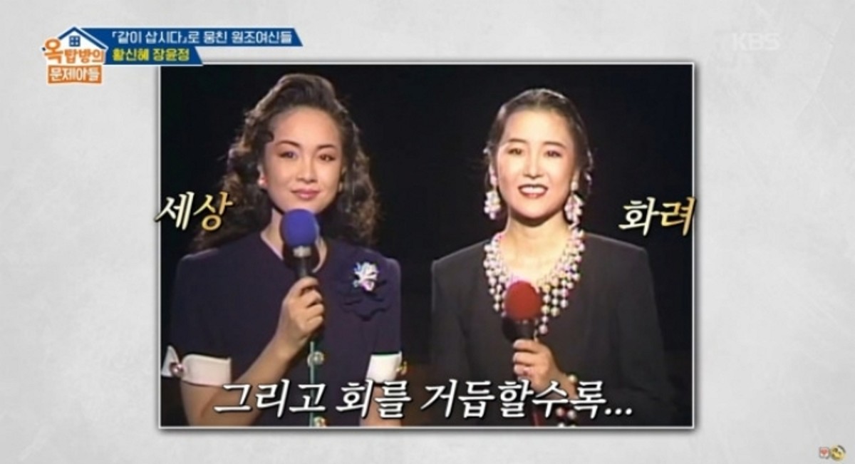 지난 15일 장윤정은 방송된 KBS2 예능프로그램 '옥탑방의 문제아들'에 고현정, 황신혜와 함께 출연해 1990년대 KBS 가요 쇼 프로그램 '토요대행진'에서 고현정과 함께 MC를 맡았던 시절의 비하인드 스토리를 공개했습니다.