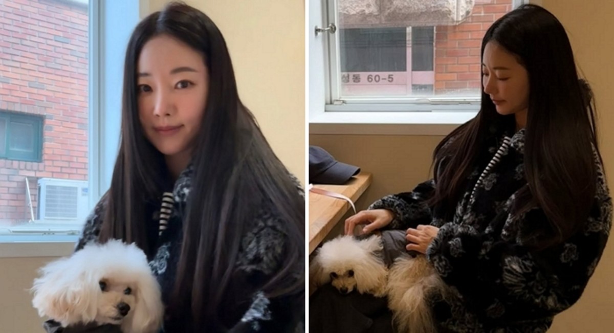 자연스러운 헤어스타일과 편안한 옷차림, 그리고 반려견을 품에 안은 포근한 모습이 더해져 보는 이들로 하여금 감탄을 자아냈습니다.