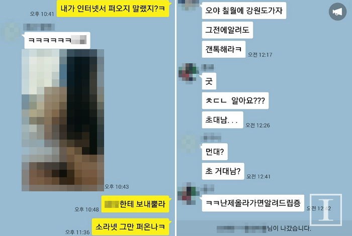 특히 이런 영상과 사진을 카톡 문자로 여러 남자들이 서로 공유하고 있었던 것이다.