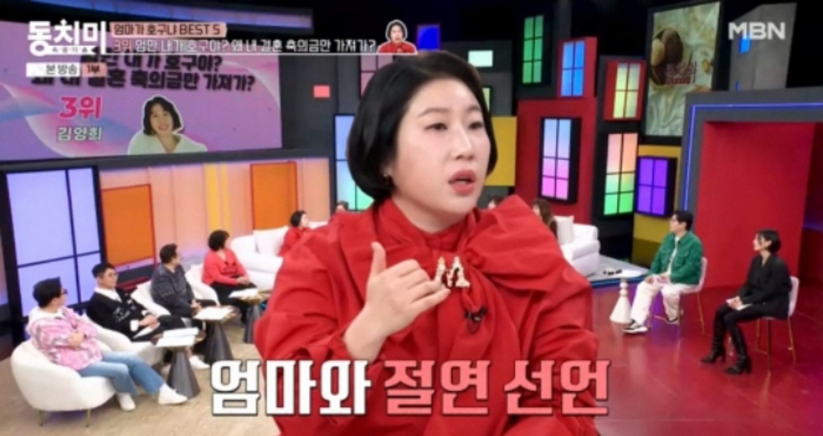 김영희는 "말 섞고 싶지 않아서 800만 원을 돌려드렸다"라며 모친에게 축의금을 돌려준 사실을 공개했습니다.
