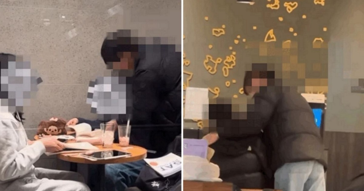 공개된 영상에는 검은 패딩에 청바지 차림의 남성이 카페 내부를 돌아다니며 여성들에게 접근하는 모습이 담겨 있습니다.