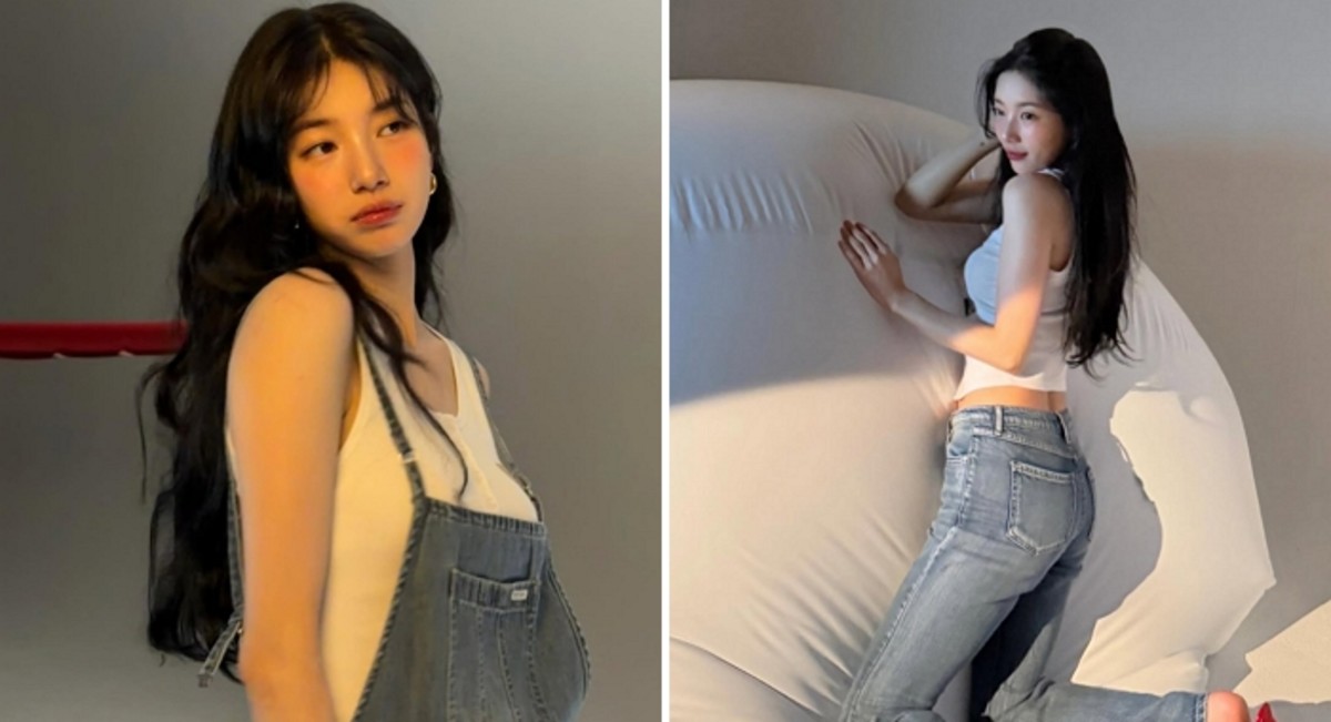 또 다른 사진에서 수지는 프로페셔널한 화보 모델의 면모를 과시했습니다. 대형 빨간 볼을 배경으로 한 데님 원피스 착장에서는 신비로운 매력을 발산했으며, 민소매 상의와 청바지를 조합한 스타일링에서는 청순함과 세련미를 동시에 보여주었습니다. 특히 그녀의 긴 웨이브 헤어와 깊이 있는 눈빛은 독특한 아우라를 완성시켰습니다.