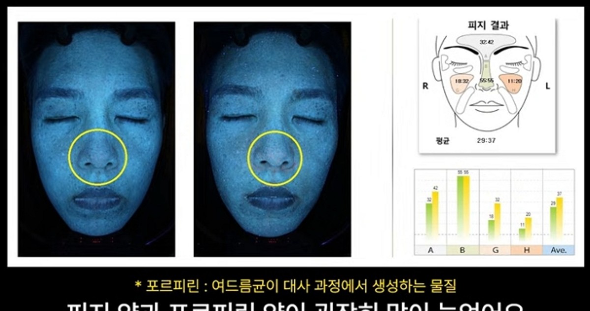 실제 피부 진단 기기로 측정한 결과는 충격적이었습니다. 실험 전 31세 수준이던 피부 나이가 36세로 측정돼 무려 5살이 증가했습니다. 피부 타입도 복합성에서 지성으로 변화했으며, 자외선 촬영에서는 코 주변을 중심으로 피지량과 모공 상태의 뚜렷한 악화가 확인됐습니다.