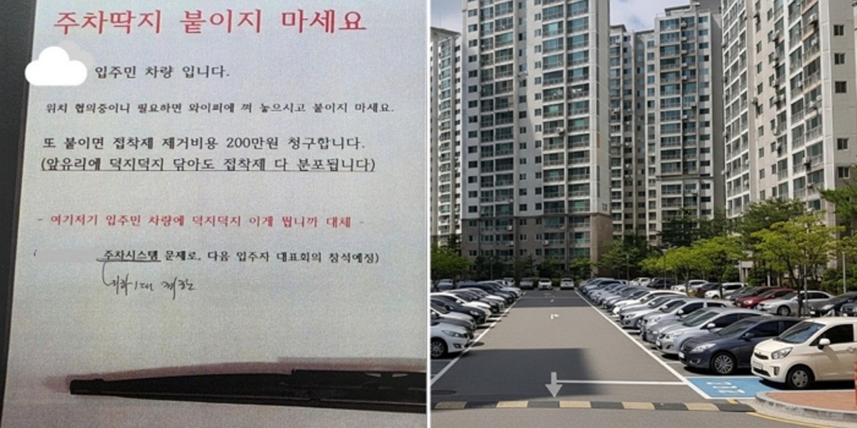 한 아파트 주민이 차량에 주차 경고장 스티커를 부착할 경우 접착제 제거 비용으로 200만원을 요구하겠다는 경고문을 남겨 누리꾼들 사이에서 논란이 일고 있습니다.