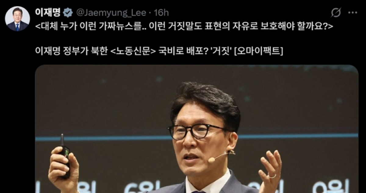이어 이 대통령은 "이런 거짓말도 표현의 자유로 보호해야 할까요"라고 공개적으로 질문했습니다. 또한 그는 김민석 국무총리가 '노동신문 국비 배포설'에 대해 사실이 아니라고 반박하는 기사를 함께 공유했습니다.