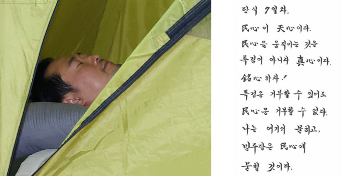 국민의힘 장동혁 대표가 통일교 특검법 수용을 요구하며 일주일째 단식을 이어가고 있습니다.