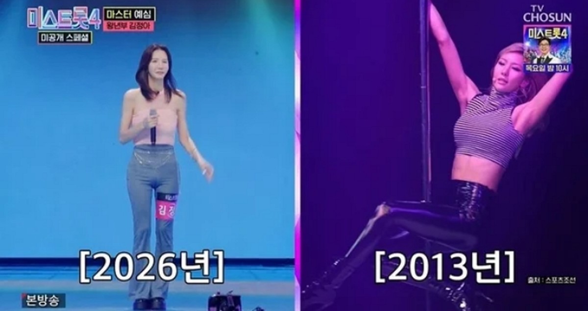 애프터스쿨 출신 김정아가 TV CHOSUN '미스트롯4 미공개 스페셜'에 출연해 쉰 목 상태로 인한 즉시 탈락이라는 아쉬운 결과를 맞았습니다.