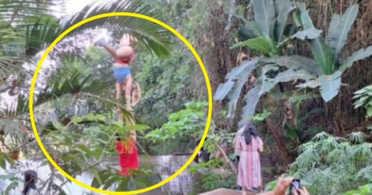 공개된 사진에는 노출이 심한 운동복을 착용한 외국인 관광객들이 고대 유적 구조물 위에서 아크로 요가 동작을 하는 모습이 포착되었습니다.