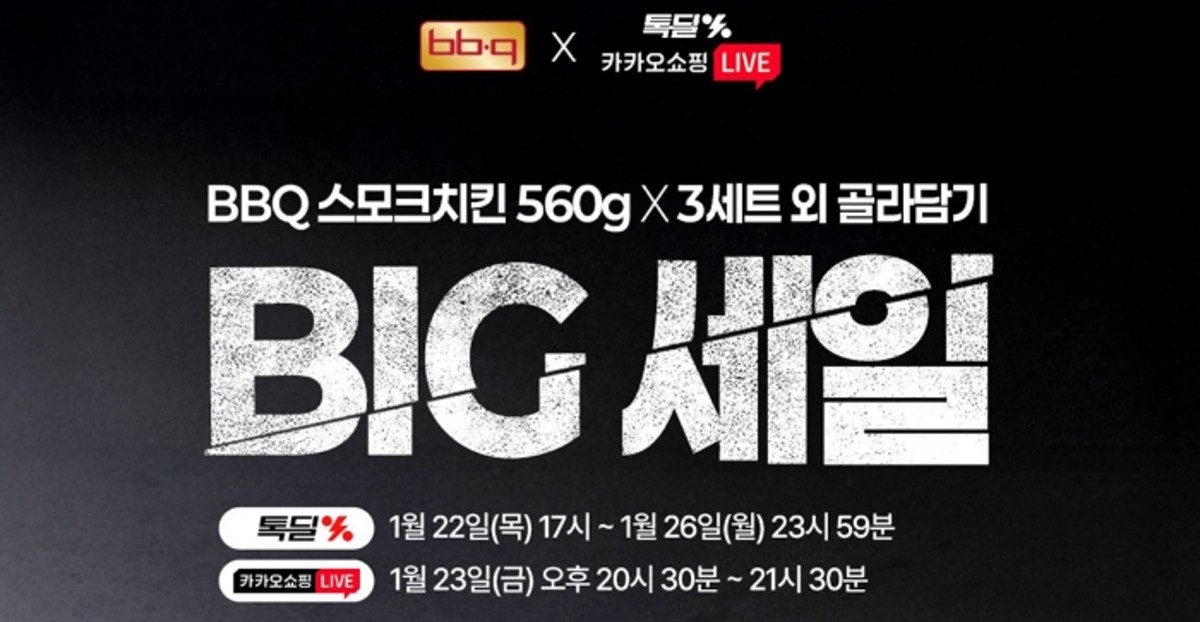 국내 최대 치킨 프랜차이즈 제너시스BBQ 그룹은 23일 오후 8시 30분부터 1시간 동안 카카오쇼핑라이브를 통해 'BBQ 스모크치킨 빅 세일'을 진행한다고 23일 밝혔습니다.