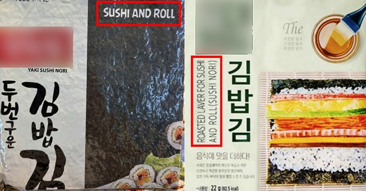 김밥용 김 포장지에 여전히 사용되고 있는 '스시 앤 롤(Sushi and Roll)' 표기를 두고 논란이 확산되고 있습니다.